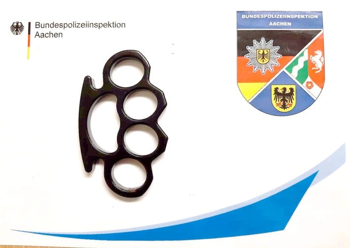 Der Mann war mit seiner Freundin aus den Niederlanden eingereist, als er von einer Streife der Bundespolizei angehalten und kontrolliert wurde. Bei der Kontrolle stellten die Beamten bei dem Mann einen Schlagring und ein Einhandmesser fest, welches sie beschlagnahmten. Der Mann wurde vor Ort zu den mitgeführten Waffen im Rahmen seiner Vernehmung befragt. Hierzu machte er von seinem Aussageverweigerungsrecht Gebrauch. Er wurde von den Beamten wegen der verschiedenen Waffendelikte zur Anzeige gebracht. Im Anschluss der polizeilichen Maßnahmen konnte er seine Reise fortsetzen. Wegen der Waffendelikte wird er sich in Zukunft vor der Justiz verantworten müssen.