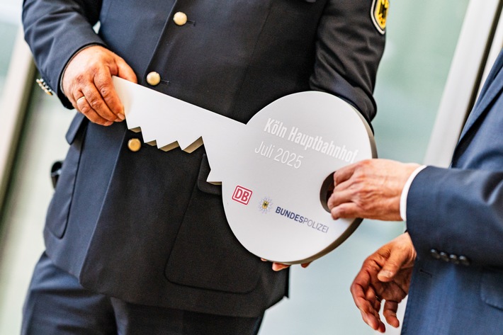 Am heutigen Donnerstag, 17.Juli 2025, wurde durch den Leiter des Bahnhofsmanagements Köln, Kai Rossmann, symbolisch der Schlüssel für die neue Wache an den Leiter der Bundespolizeiinspektion Köln, Udo Peltzer, übergeben.