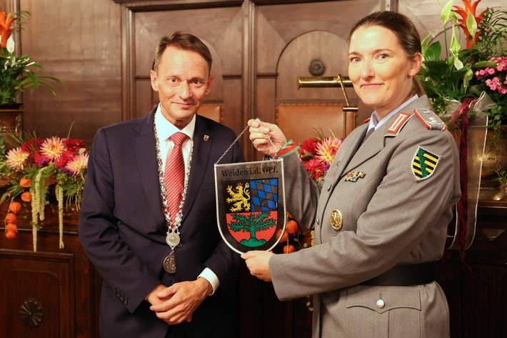 Gemeinsam mit dem Kommandeur der 10. Panzerdivision, Generalmajor Ruprecht von Butler, und dem Oberbürgermeister der Stadt Weiden, Jens Meyer den, hießen Vertreter aus Politik und Wirtschaft sowie zahlreiche Bürgerinnen und Bürger den neuen Verband vor dem Alten Rathaus in Weiden in der Oberpfalz willkommen.