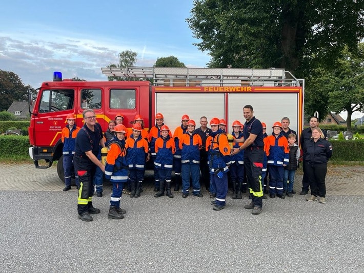 Am 29.08.2023 konnten die Kameradinnen und Kameraden der Jugendfeuerwehr Stadt Kalkar und die BetreuerInnen zwei Atemschutzattrappen entgegennehmen. Diese wurden vom Förderverein Löschzug Kalkar e. V. gespendet.