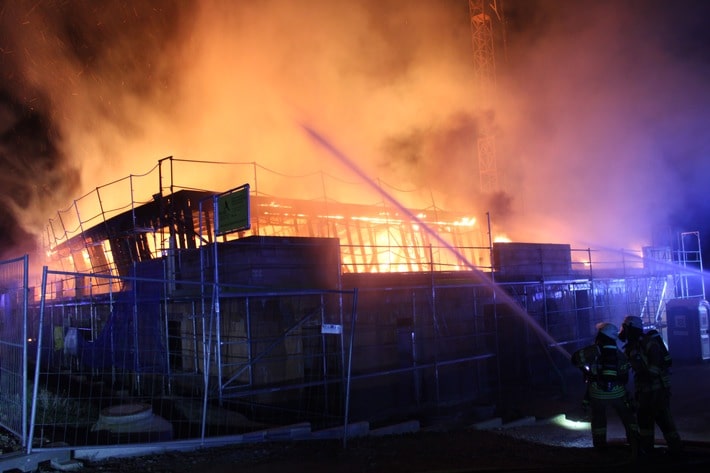 FF Bad Salzuflen: KiTa-Neubau in Bad Salzuflen steht zum zweiten Mal in Vollbrand / Freiwillige Feuerwehr ist in der Nacht zu Donnerstag mit 45 Kräften im Einsatz