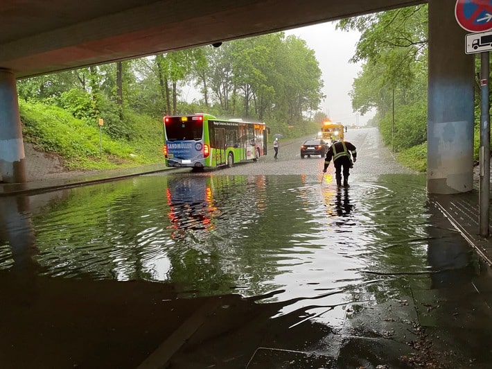 Gegen 17.00 Uhr wurde die Feuerwache in erhöhte Alarmbereitschaft versetzt. Das Unwetter traf den Ortsteil Holzhausen mit großer Wucht. Immer mehr Meldungen über vollgelaufene Keller oder überflutete Straßen gingen auf der Leitstelle Lippe und auch der Feuerwache selbst ein. Um das überdurchschnittliche Einsatzaufkommen abarbeiten zu können, wurden final alle ehrenamtlichen Einheiten im Stadtgebiet alarmiert. Bis zu 100 Kräfte waren aktiv.