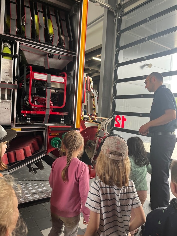 Mit dem Besuch der angehenden Grundschülerinnen und Grundschüler des katholischen Kindergartens Alpen, des Waldkindergartens Alpen sowie des katholischen Kindergartens Bönninghardt endete in diesen Tagen die diesjährige Reihe der Brandschutzerziehungen. Wie immer wurden ausreichend spannende und kreative Fragen aus den Reihen der jungen Besucher gestellt. Vermittelt wurden theoretische Punkte wie „Wer ist eigentlich die Feuerwehr Alpen?“ oder „Wie kann ich eigentlich als sehr junger Mensch schon helfen und den Notruf wählen?“. Der etwa zweistündige Besuch der jeweiligen Vorschulkinder endete mit einem Rundgang durch das Gerätehaus der Einheit Alpen. Im Fokus der Kinder waren obligatorisch die persönliche Schutzausrüstung und natürlich die Fahrzeuge.
