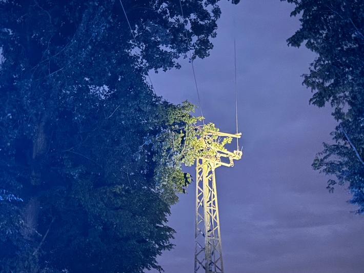 Vor Ort war mehrere dicke Äste auf eine Stromleitung sowie einen Masten gefallen. In der Folge meldeten Anwohner einen entsprechenden Funkenflug und ein Feuer am betroffenen Masten. Auch der Strom fiel im Ortsteil Menzelen zu dieser Zeit kurzzeitig aus. Gemeinsam mit dem zuständigen Energieversorger sorgten die Einsatzkräfte für die Entfernung der Äste und unterstützten bei der Instandsetzung mit der Drehleiter. Entgegen der Erstmeldung befand sich die Einsatzstelle an der Alten Poststraße und nicht auf dem Drosselweg.