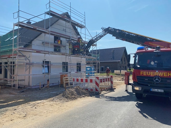 Vor Ort unterstützten die Einsatzkräfte den Rettungsdienst beim patientenschonenden Transport einer Person aus dem Haus. Hierfür wurde die Drehleiter eingesetzt. Diese verfügt über eine entsprechend fixierte Trage, die durch die Einsatzkräfte für derartige Einsätze verwendet wird.