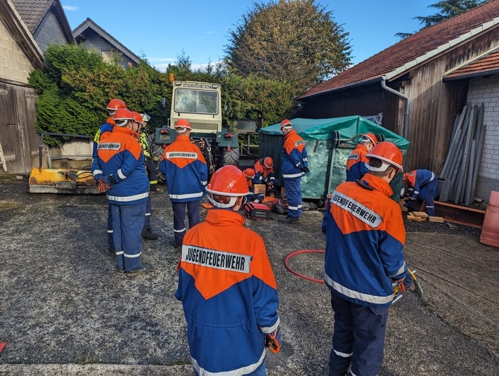 Unsanft, mit einer Handsirene, alarmierten die Ausbilder den Feuerwehrnachwuchs gegen 6 Uhr in der Früh. An einem Feldweg war ein Mülleimer in Brand geraten. Durch schnelles eingreifen war die Lage schnell unter Kontrolle.