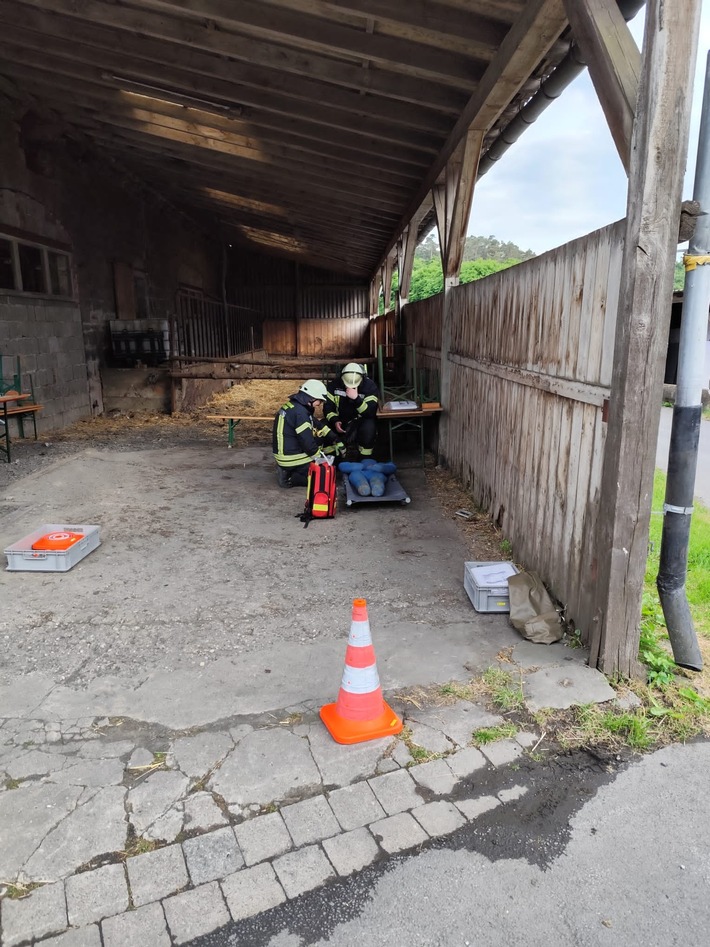 FW-AR: Feuerwehren aus Wennigloh, Stemel und Hachen trainieren den Ernstfall auf Wagyu-Hof