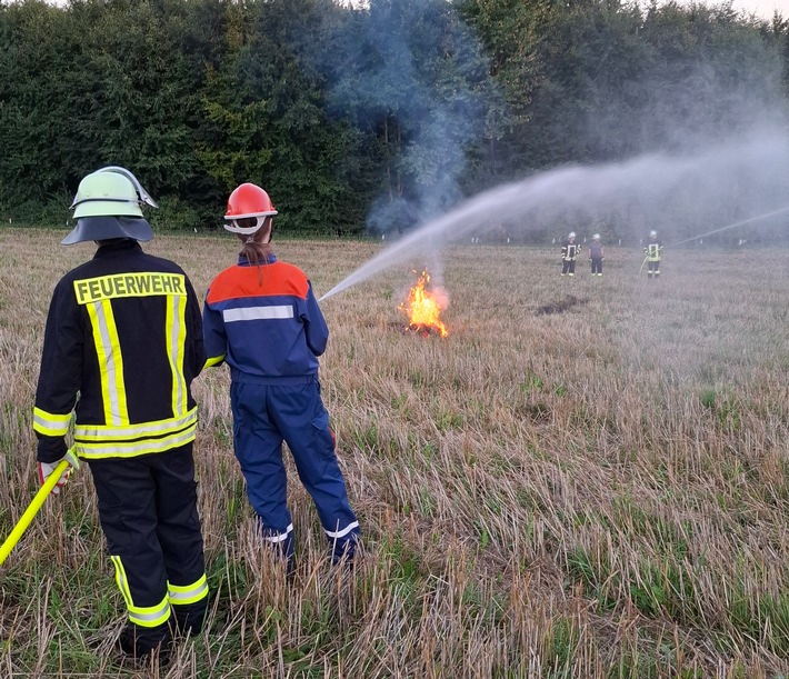 Die Feuerwehrkräfte des Löschzuges Arnsberg und der Löschgruppe Wennigloh haben gemeinsam auf einem abgeernteten Feld die Vegetationsbrandbekämpfung trainiert. Ziel der Übung war es, sowohl die Handhabung spezieller Gerätschaften zu üben als auch die Herausforderung zu meistern, Wasser an die Einsatzstelle zu bringen.