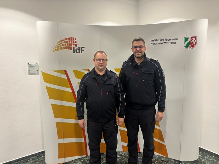 Arnsberg/ Münster Bereits Anfang Oktober diesen Jahres durfte die Feuerwehr Arnsberg sich über die Ernennung der neuen dreiköpfigen Wehrführung freuen. Neben dem hauptamtlichen Leiter Dennis Pingel, wurden Sascha Ricke (Löschzug Neheim) sowie Kai Spiegel (Löschzug Oeventrop) in das Amt der Stellvertreter ernannt (wir berichteten in einer separaten Presseinformation). Nun durften die beiden stellvertretenden Wehrführer den sogenannten F6-Lehrgang am Institut der Feuerwehr NRW (IdF NRW) in Münster besuchen.