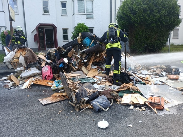 Nachdem der Löschangriff fertig aufgebaut sowie im benachbarten Wohnhaus die Fenster geschlossen worden waren, wurde der Fahrer angewiesen den Inhalt des Müllwagens auf die Straße abzukippen. Hiermit wurde erfolgreich ein Übergreifen des Brandes auf das Fahrzeug und insbesondere auf die zugehörigen Hydraulikleitungen verhindert. Im Anschluss konnte der Sperrmüll mittels Wasser und Löschschaum schnell gelöscht werden. Der Müllwagen blieb augenscheinlich unversehrt.