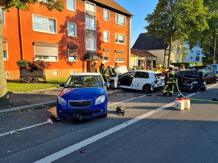 Am frühen Abend gegen 19:10 Uhr wurde der Feuerwehr ein Verkehrsunfall auf der Markstraße in Bochum-Wiemelhausen gemeldet, dabei kam eine Person ums Leben. Aus ungeklärter Ursache kam ein PKW von der Fahrbahn ab und kollidierte mit mehreren am Straßenrand geparkten Fahrzeugen. Es entwickelte sich eine aufwändige Einsatzlage, da es sich bei zwei der Fahrzeuge um PKW mit alternativen Antrieben handelte. Neben dem Unfallfahrzeug, welches mit Gas betrieben wurde, war ein weiterer PKW mit einem Elektroantrieb involviert. Die Sicherung der Einsatzstelle war sehr zeitintensiv, da ein Entzünden der Fahrzeuge nicht ausgeschlossen werden konnte. Bei den weiteren beschädigten Fahrzeugen wurden ausgelaufene Betriebsstoffe aufgenommen, ein Entzünden mit einem Löschangriff verhindert. Insgesamt 25 Einsatzkräfte von Feuerwehr und Rettungsdienst waren fast 90 Minuten lang im Einsatz. Die Einsatzstelle wurde der Polizei für die Unfallursachenermittlung übergeben.