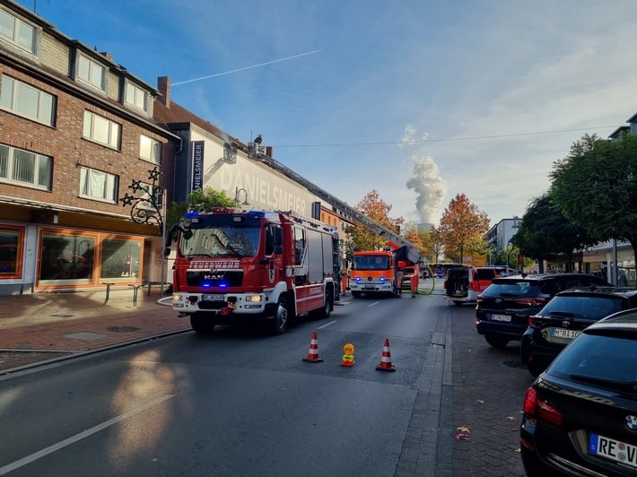 Um 14:09 Uhr wurde die Feuerwehr Datteln zur Castroper Straße alarmiert. Hier wurde ein Dachstuhlbrand im Bereich eines Kaufhauses gemeldet. Beim Eintreffen der Feuerwehr war der Verkaufsraum vollständig verraucht, eine weitere Rauchentwicklung war auf dem Dach erkennbar. Durch die sofort eingeleiteten Evakuierungsmaßnahmen konnten 23 Personen aus dem Gebäude gerettet werden, wovon 1 Person vom Rettungsdienst versorgt werden musste.
