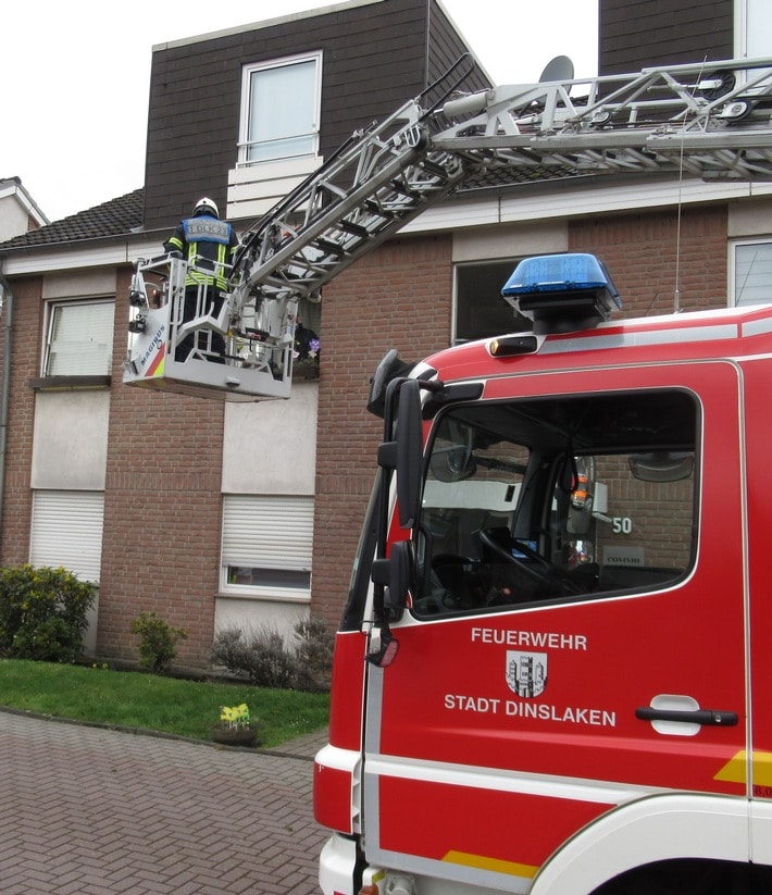 Am Freitagvormittag rückte die Feuerwehr Dinslaken mit dem Alarmstichwort „Person in Wohnung“ in den Ortsteil Hiesfeld aus. Bereits vor dem Eintreffen konnte die Wohnungstüre durch einen Zweitschlüssel geöffnet werden. Durch die örtlichen Gegebenheiten und dem Patientenzustand war eine Rettung der Person über die Drehleiter erforderlich. Während der Rettungsmaßnahmen wurde die Patientin durch den Rettungsdienst und dem Notarzt untersucht, versorgt und betreut. Für die Dauer der Rettungsmaßnahmen sperrte die Polizei die Stichstraße.