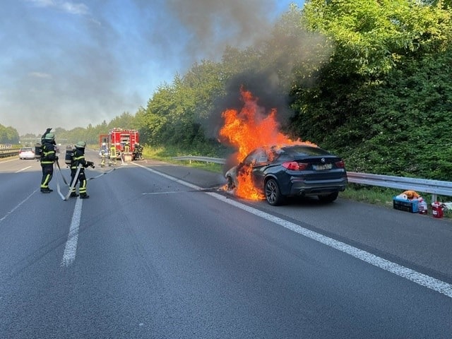 Am Freitag Abend bemerkte ein Autofahrer eine Rauchentwicklung an seinem Pkw während der Fahrt auf der Autobahn 2 in Fahrtrichtung Hannover. Als er auf dem Seitenstreifen zum Halten kam, entwickelte sich unmittelbar ein Brand, der sich schnell auf das ganze Fahrzeug ausbreitete.