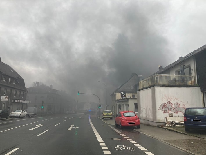 Die ersteintreffenden Kräfte der Feuerwehr sahen bereits eine große Rauchentwicklung und Flammen aus dem Werkstattbereich. Durch den Wind angetrieben, zog der Rauch in nordöstliche Richtung und sorgte für starke Beeinträchtigung der Sicht auf der Provinzialstraße.