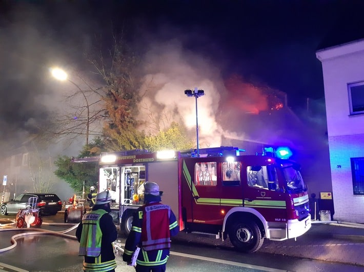 Am 03.02.2024 gegen 01:45 Uhr wurde die Feuerwehr von Anwohnern zu einem Dachstuhlbrand eines Wohnhauses an der Stockumer Straße im Ortsteil Dortmund-Hombruch alarmiert.