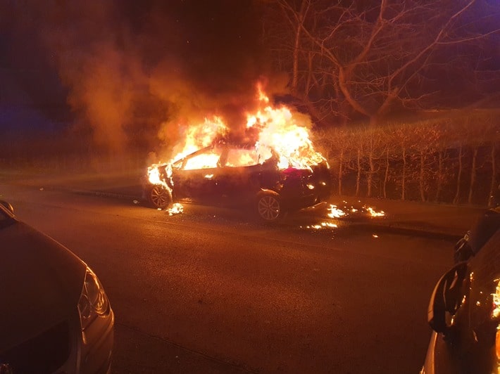 Beim Eintreffen der Feuerwehr stand der Pkw bereits im Vollbrand.