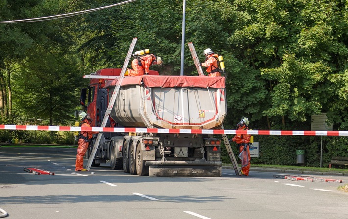 Nach Abschluss aller Maßnahmen konnte das Fahrzeug unter Begleitung der Feuerwehr, der Polizei und des LANUK zu einem Fachentsorger nach Lünen überführt werden.
