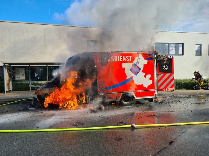 FW-E: Rettungswagen steht in Vollbrand – keine Personen verletzt