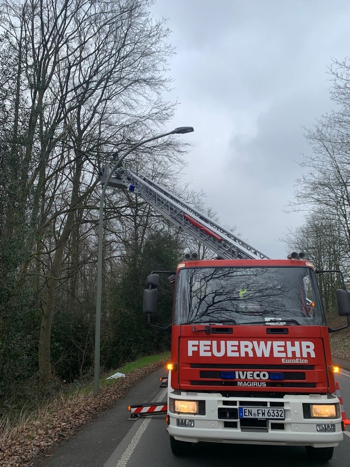 Am Samstag wurden um 15:02 Uhr die Kameradinnen und Kameraden der Löscheinheit Alt-Wetter zu einem Gefahrenbaum auf die Grundschötteler Str. alarmiert. Hier drohten aus circa 20m Höhe Äste aus einer Baumkrone auf die Straße zu stürzen. Die Äste wurden durch die Einsatzkräfte aus dem Korb der Drehleiter entfernt und stellten somit keine Gefahr mehr für den Straßenverkehr da. Während des noch laufenden Einsatzes wurde zudem festgestellt, dass zwei weitere Gefahrenbäume auf der gegenüberliegenden Straßenseite ebenfalls umzustürzen drohten, da deren Wurzeln bereits frei lagen. Diese wurden ebenfalls durch die eingesetzten Kräfte entfernt und im Anschluss die Fahrbahnen gereinigt. Nach 1 Stunde und 15 Minuten waren die ehrenamtlichen Kameradinnen und Kameraden wieder einsatzbereit an Ihrem Standort.