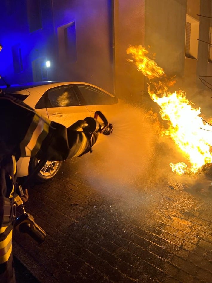Um 2 Uhr brannte an der Alten Bergstraße eine Altpapiertonne. Das Feuer wurde schnell mit einem C-Rohr gelöscht.