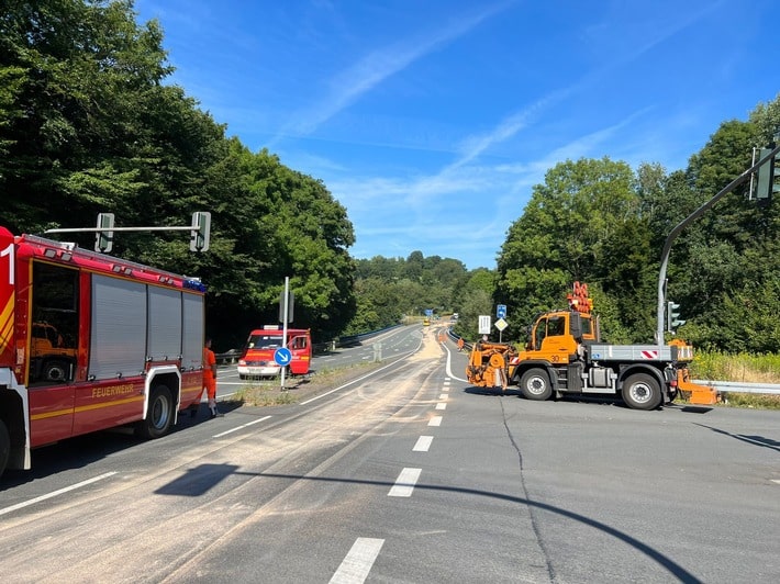 Aufgrund der Länge der Spur wurden drei Löscheinheiten alarmiert. Die Betriebsmittelspur wurde abgestreut und das Bindemittel mit der städtischen Kehrmaschine aufgenommen.