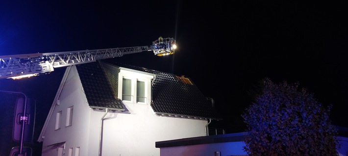 Die Feuerwehr Schwelm wurde gestern am 22. April um 21:26 Uhr zu einem Feuer im Gebäude im Boellingweg alarmiert. Hier sollte nach einem Blitzeinschlag Brandgeruch im Gebäude wahrnehmbar sein. Die Feuerwehr Schwelm rückte unmittelbar mit den Löschzügen Stadt und Winterberg zur Einsatzstelle aus; eingesetzt waren ebenfalls der Einsatzführungsdienst sowie die hauptamtliche Wachbesatzung. Vor Ort wurde eine etwa 1 m² große Stelle im Dach festgestellt, wo die Dachpfannen fehlten und eindeutig erkennbar war, dass dort ein Blitz eingeschlagen sein musste. Die Feuerwehr Schwelm kontrollierte parallel mit einem Trupp im Innenbereich und über eine Drehleiter im Außenbereich mittels Wärmebildkamera die Einschlagstelle. Glücklicherweise konnten aber keine erhöhten Temperaturen festgestellt werden. Die elektrischen Sicherheitseinrichtungen im Gebäude hatten ebenfalls ausgelöst, weshalb der Energieversorger mit zu Einsatzstelle alarmiert wurde. Hier war ein weiteres Eingreifen der Feuerwehr nicht erforderlich.