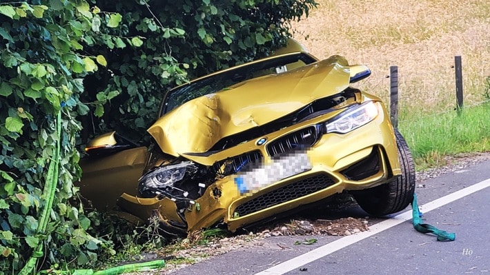 Die Einsatzkräfte fanden vor Ort ein Sportcabrio der Marke BMW vor, der von der Straße abgekommen war und gegen einen Strommast geprallt war. Die beiden Insassen des Pkw wurden durch den Rettungsdienst untersucht; ein Transport in ein Krankenhaus erfolgte jedoch nicht.