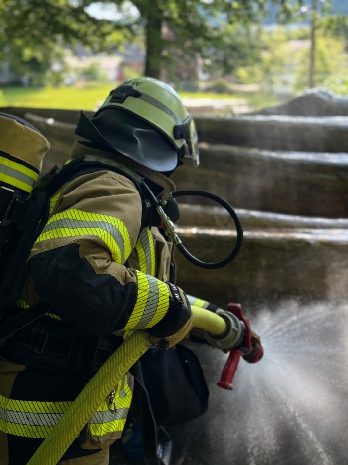 Am frühen Montagabend wurde die Feuerwehr Herdecke in die Straße Kallenberger Weg gerufen. Hier hatten Spaziergänger eine leichte Rauchentwicklung aus einen Stapel Baumstämme erkannt und richtiger Weise sofort die Feuerwehr gerufen. Aufgrund des Hinweises, das sich der Holzstapel im Wald befindet, rückte die Feuerwehr mit zwei Fahrzeugen aus. Das geländegängige Mehrzweckfahrzeug (MZF) konnte mit dem seit ca. drei Wochen verlasteten 600 Liter Wasserbehälter bis auf ca. 10 Meter an die Einsatzstelle heranfahren. Mit einem C-Rohr konnte der leicht glimmende und rauchende Baumstamm abgelöscht werden. Der Stapel wurde anschließend mit der Wärmebildkamera kontrolliert und die Einsatzstelle der eingetroffenen Polizei übergeben.
