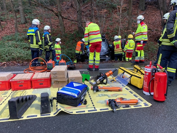 Da fünf Verletzte gemeldet waren, von denen zwei eingeklemmt waren, rückten die Rettungskräfte mit einem Großaufgebot zur Einsatzstelle aus. Aus dem Kreisgebiet sowie aus Bochum waren insgesamt vier Rettungs- und ein Krankentransportwagen sowie ein Notarzteinsatzfahrzeug vor Ort. Ein weiterer Notarzt wurde mit dem Rettungshubschrauber zur Einsatzstelle geflogen. Zur Koordination der Rettungskräfte wurden ergänzend der leitende Notarzt und der organisatorische Leiter des Rettunsgdienstes alarmiert.