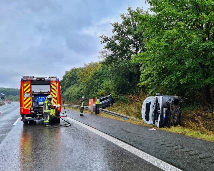 Am Samstag, den 10.09.2022 wurde die Feuerwehr Gevelsberg am Nachmittag zu einem Verkehrsunfall mit zwei beteiligten PKW auf die BAB 1 alarmiert. Bei Ankunft der ersten Einsatzkräfte hatten schon alle Insassen eigenständig die verunfallten Fahrzeuge verlassen und wurden anschließend vom Rettungsdienst gesichtet und versorgt. Beide PKW kamen im Grünstreifen der Autobahn zum Stehen, wobei ein PKW auf der Seite lag. Die Feuerwehr stellte den Brandschutz sicher, sicherte die Unfallstelle gegen den Verkehr ab und unterstützte den Rettungsdienst bei der Versorgung der Insassen. Von den fünf beteiligten Insassen wurden zwei zur weiteren Versorgung einem Krankenhaus zugeführt.