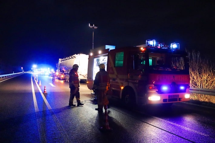 Vor Ort stellten die Einsatzkräfte fest, dass ein Lastkraftwagen nach einem technischen Defekt von der Fahrbahn abgekommen war und dabei die Leiplanke auf einer Länge von rund 60 Meter schwer beschädigt hatte. Dem Fahrer gelang es jedoch, ein umstürzten des Lastkraftwagens zu verhindern. Durch den Unfall wurden Trümmerteile über mehr als einhundert Metern länge verteilt. Nachfolgende Pkw, die den Trümmerteilen nicht mehr ausweichen konnten, wurden dabei teilweise schwer beschädigt. Glücklicherweise kamen keine Personen zu Schaden. Die Polizei hat die Ermittlungen zur Unfallursache aufgenommen. Die Einsatzkräfte der Feuerwehr sicherten gemeinsam mit der Polizei die Unfallstelle ab und halfen bei der Bergung der Fahrzeuge. Die anschließende Sicherung der Leitplanke und die Reinigung der Fahrbahn übernahm ein Spezialunternehmen. Für die Dauer der Unfallaufnahme und Bergungsarbeiten musste die Bundesstraße zwischen den Auffahrten Süsterseel und Gangelt für mehrere Stunden komplett gesperrt werden.
