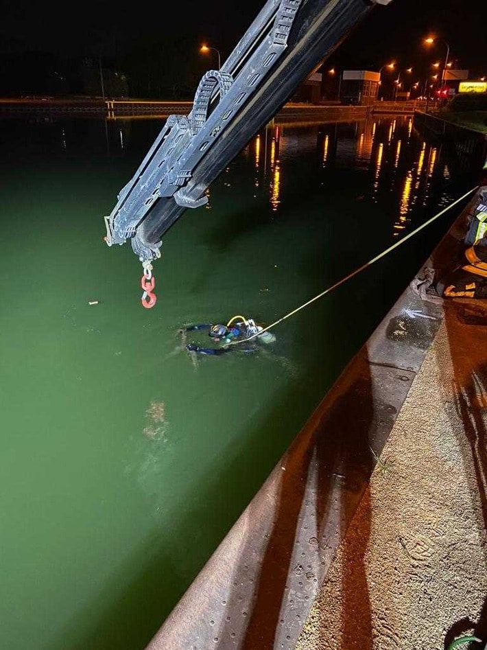 In den späten Abendstunden des Sonntag, 01.05.2022, rückte die Taucherstaffel der Feuerwehr Gelsenkirchen zum nahgelegenen Rhein-Herne-Kanal aus. Aus bislang ungeklärter Ursache war dort ein Van in das Gewässer gefahren. Der Fahrer konnte sich glücklicherweise aus eigener Kraft aus dem sinkenden Fahrzeug befreien – er blieb unverletzt. Um den Schiffsverkehr nicht zu behindern, forderten die Wasserschutzpolizei noch in der Nacht die Feuerwehrtaucher und einen Bergungsunternehmer an. Gemeinsam gelang es den Spezialisten das Fahrzeug aus dem Wasser zu heben. Die Ermittlungen zum Unfallhergang leitete die Polizei ein. Nach rund drei Stunden endete der Einsatz für die eingesetzten Kräfte.