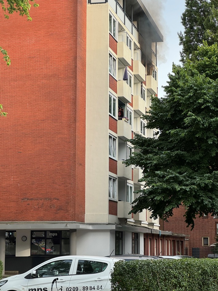 Bei Eintreffen der Einheiten der Feuerwehr stand eine Wohnung im 5. Obergeschoss des Gebäudes in Vollbrand. Der Treppenraum des Gebäudes und angrenzende Hausflure waren verraucht. Auf verschiedenen Balkonen machten sich Bewohner bemerkbar, die ihre Wohnungen nicht mehr verlassen konnten.