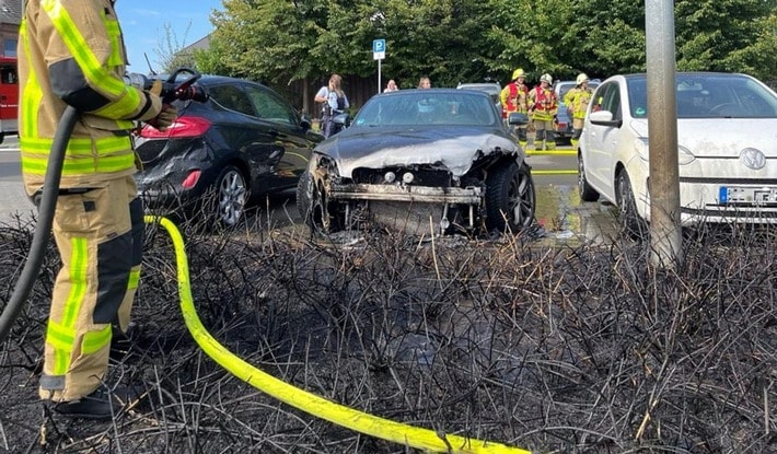 Drei Löschtrupps gelang es, zum einen die Ausbreitung der Flammen aufs Gelände zu stoppen und schließlich auch die beiden PKW zu löschen, die jeweils im Motorraum in Vollbrand standen. Zudem konnten die Helfer verhindern, dass die Flammen auch zwei weitere PKW noch in Brand setzten, bei denen die Hitze bereits Teile der Frontverkleidung hatten schmelzen, beziehungsweise ankokeln lassen. Mithilfe einer Wärmebildkamera kontrollierten sie Fahrzeuge und Fläche auf mögliche verbliebene Brandherde. Nachdem alle Flammen gelöscht waren, war der Einsatz gegen 14:30 Uhr beendet und auch die Bahn konnte den Betrieb auf der Strecke wieder aufnehmen. Eingesetzt waren rund 20 Kräfte der ehrenamtlichen Löscheinheiten aus Kapellen, Wevelinghoven und Hemmerden, sowie ein Trupp der Hauptamtlichen Wache.