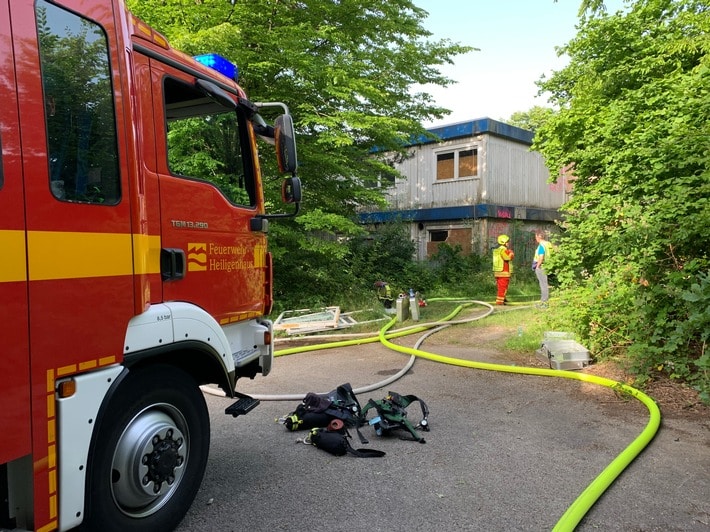 Zunächst meldeten Anrufer der Feuerwehrleitstelle um 05:46 Uhr eine Rauchentwicklung aus dem Heiligenhauser Süden, der genaue Ort konnte nur vermutet werden. Die Feuerwehr machte eine starke Rauchentwicklung im Bereich einer ehemaligen Flüchtlingsunterkunft aus. Bei Eintreffen der ersten Kräfte brannten acht Wohncontainer eines zusammenhängenden Komplexes. Ob sich im Gebäude Personen befinden war unklar. Der Einsatzleiter ließ Stadtalarm und damit die Sirenen für die Feuerwehr Heiligenhaus auslösen, ein weiterer Löschzug rückte von der Feuerwehr Velbert an.