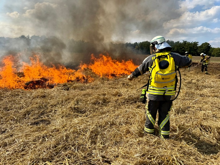 Vergangenen Samstag fand der erste von zwei identischen Seminartagen statt. Ein externer Dozent des Vereins für Wald- und Flächenbrandbekämpfung e. V. führte im ersten Teil des Seminars durch die Besonderheiten von Wald- und Vegetationsbränden. Dabei wurden wichtige Begriffe und Einsatzgrundsätze erläutert, die für den Einsatzerfolg und die Sicherheit der Einsatzkräfte essenziell sind. Anschließend fuhren die Teilnehmenden in den Ortsteil Bucholtwelmen. Ein Feuerwehrkamerad stellte dort sein abgeerntetes Maisfeld und Strohballen für den praktischen Teil zur Verfügung. In zwei Durchläufen wurde das Brandgut kontrolliert angezündet. Bei der anschließenden Brandbekämpfung konnten die zuvor besprochenen Seminarinhalte geübt werden.
