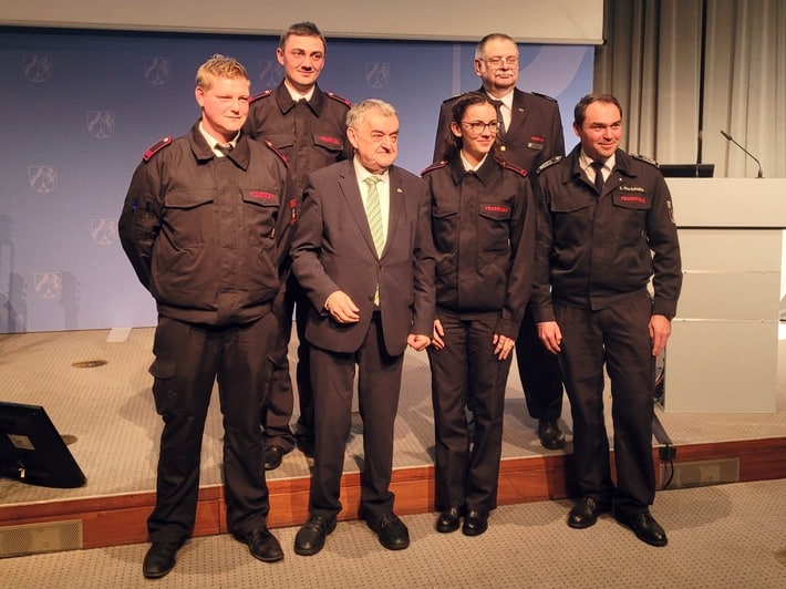 Anlässlich des Tages des Ehrenamtes lud Innenminister Herbert Reul ehrenamtliche Katastrophenschützer am Dienstag in die Rotunde des Ministeriums des Innern in Düsseldorf ein. Neben mehr als 200 ehrenamtlichen Helferinnen und Helfern der in Nordrhein-Westfalen tätigen Hilfsorganisationen nahmen auch der Leiter der Feuerwehr Stephan Hinz-Sobottka sowie zwei Kameraden und eine Kameradin der Freiwilligen Feuerwehr Hünxe an der Feierstunde teil. Nach der Begrüßung und einer musikalischen Einstimmung begann der Festakt um 17:30 Uhr mit der Eröffnungsrede des Innenministers. In seiner Rede dankte Innenminister Reul allen Ehrenamtlichen und hob die Bedeutung der in ihrer Freizeit tätigen Einsatzkräfte hervor. Egal in welcher Hilfsorganisation, alle leisten einen unverzichtbaren Beitrag für die Sicherheit der Bürgerinnen und Bürger. Im Rahmen der Veranstaltung wurden mehrere Gäste zu den vergangenen Katastrophenschutztagen interviewt. Der diesjährige Katastrophenschutztag fand in Paderborn statt, im nächsten Jahr ist der Katastrophenschutztag Nordrhein-Westfalen am 21. September in Coesfeld geplant. Die durchweg positive Stimmung wurde durch eine tolle Atmosphäre und ein reichhaltiges Catering abgerundet.