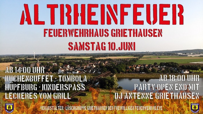 Bei der Löschgruppe Griethausen geht es wieder rund. Nachdem Anfang Mai bei einer offenen Übung ein Blick hinter die Kulissen geworfen werden konnte, lädt die Einheit aus dem Altrheindorf nun zum Feiern ein: Zum Altrheinfeuer!