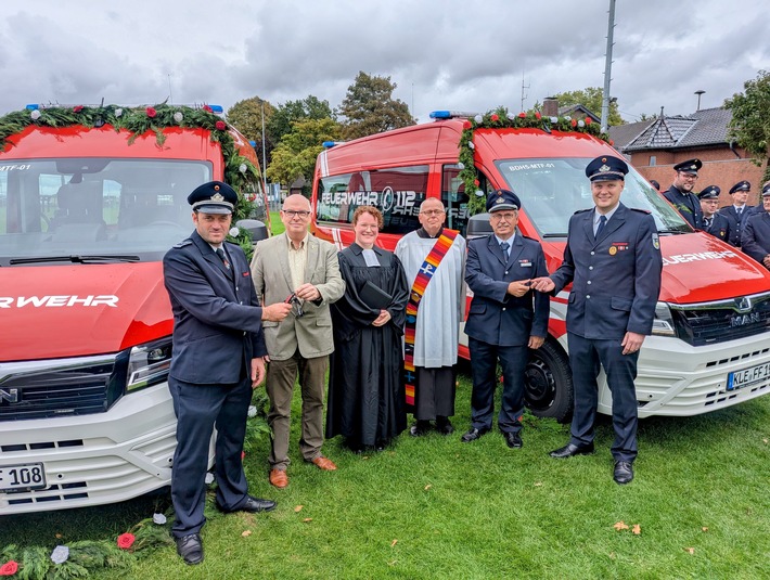 Pfarrerin Ronda Lommel und Diakon Michael Rübo segneten die Fahrzeuge ein. Anschließend übergab der stellvertretende Bürgermeister Alfred Derks die Schlüssel an Feuerwehrleiter Klaus Elsmann.