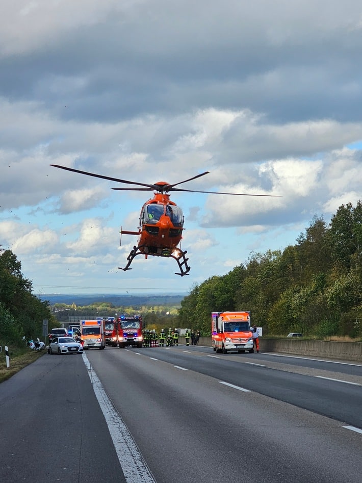 FW Königswinter: Feuerwehr rettet Frau aus Unfallfahrzeug auf der Autobahn A3 – Eine schwerst Verletzte