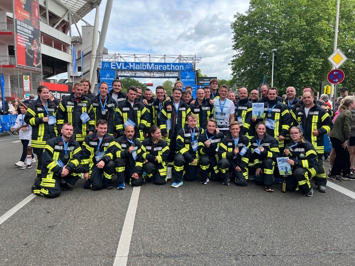 FW-LEV: Einsatzkräfte der Feuerwehr laufen für die Kinderpalliativstation Leverkusen