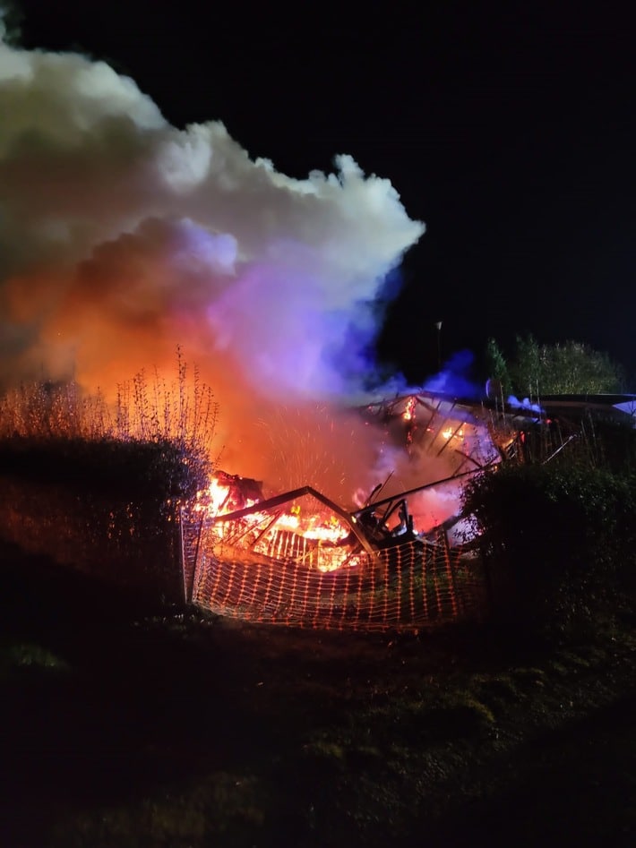 FW Lügde: Hütte auf Campingplatz steht in Vollbrand