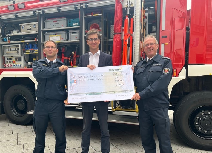 Das Starkregenereignis „Bernd“ aus dem Juli 2021 traf einige Regionen in Nordrhein-Westfalen besonders schwer. Die Feuerwehren in diesen Regionen waren gleichzeitig Ersthelfer und Betroffene. Auf sie kam nach der Katastrophe eine Mammutaufgabe zu. „Wir von der Provinzial Iserlohn wissen zu schätzen, welch großen Dienst die Feuerwehr hier vor Ort geleistet hat. Und das, obwohl sie selbst durch die Folgen des Unwetters mit großen Widrigkeiten zu kämpfen hatte“, betont Geschäftsstellenleiter Lars Wygoda von der Provinzial Iserlohn. Er überreichte dem Förderverein der Feuerwehr Iserlohn unter Vorsitz von Michael Zihn symbolisch einen Scheck in Höhe von 2123,63 Euro.