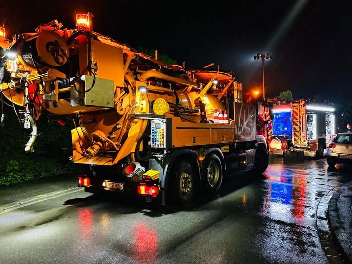 Die dortige Unterführung stand auf Grund des anhaltenden Regens unter Wasser, der betroffene Straßenabschnitt wurde gesperrt.
