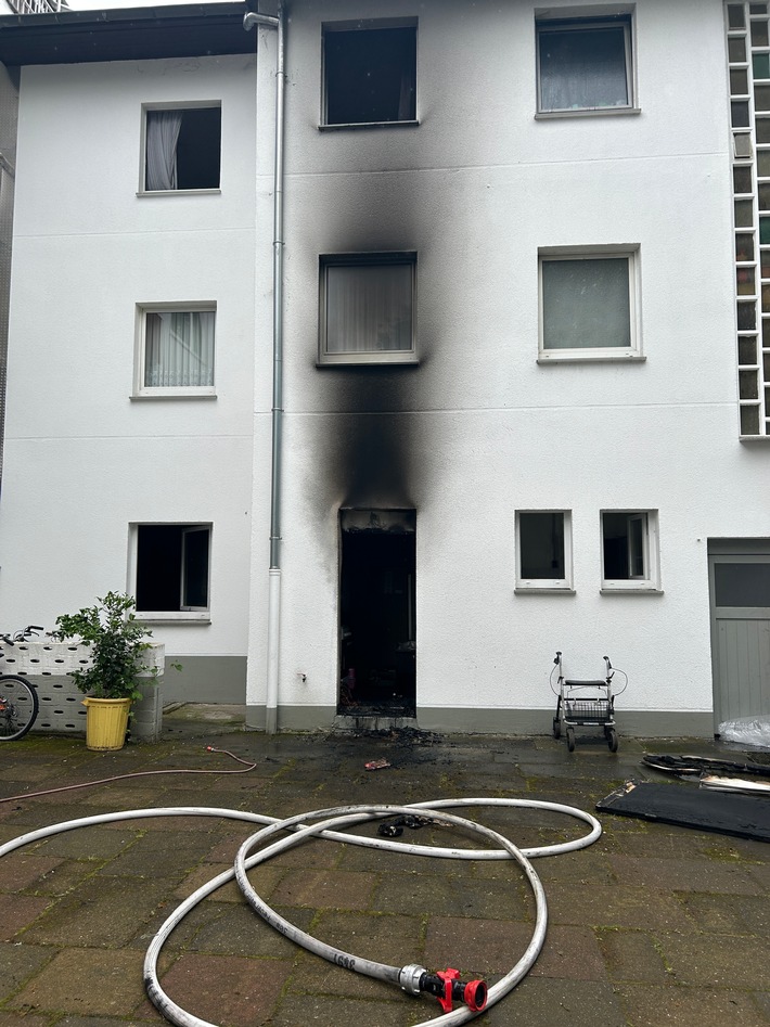 FW Moers: Brand in Wohn- und Geschäftshaus / Person über Drehleiter in Sicherheit gebracht
