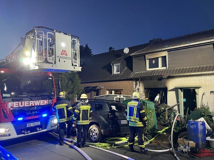 FW Moers: Verletzte und 2 tote Katzen bei Wohnhausbrand in Moers-Scherpenberg