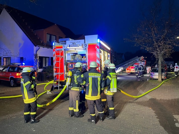 Als die ersten Einsatzkräfte wenige Minuten nach der Alarmierung an der Einsatzstelle eintrafen, bot sich ihnen folgendes Bild: In einem Einfamilienhaus brannte es im rückwärtigen Bereich im ersten Obergeschoss. Die Fenster waren bereits geborsten, sodass das Feuer auf den Dachstuhl überzugreifen drohte. Durch das starke Flammenbild sowie die starke Rauchentwicklung waren auch die unmittelbar angrenzenden Häuser gefährdet. Zusätzlich war nicht auszuschließen, dass sich noch Personen in dem betroffenen Haus befanden.