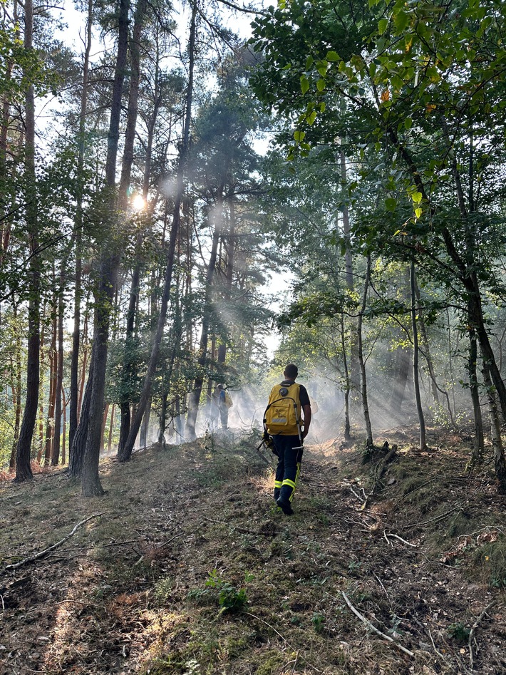 Ein Waldbrand ist am Samstag auf rund 100-200 Quadratmetern auf dem Gebiet des Nationalparks Eifel ausgebrochen. Anrufer meldeten eine Rauchentwicklung aus dem Wald bei Schmidt. Die Rauchentwicklung war zwar sichtbar, jedoch war der Weg zum Brandherd und die genaue Lage des Brandes nur schwierig auszumachen. So kamen ein Polizeihubschrauber und die Drohneneinheit des Kreises Düren zum Einsatz, um den Brand zu lokalisieren. Die Brandbekämpfung wurde mit Löschrucksäcken und Bodenbearbeitungswerkzeugen durchgeführt, mit Fahrzeugen war die Stelle nicht erreichbar. Die Ursache war offensichtlich eine Feuerstelle im Wald, diese war zwar vorbildlich mit Steinen hergerichtet, vermutlich war das Feuer aber nicht vollständig gelöscht worden. Grundsätzlich beachten Sie unbedingt zum Schutz unserer Wälder, dass Rauchen, Grillen und offenes Feuer im Wald streng verboten sind. Bitte parken Sie nur auf befestigten Flächen, damit heiße Katalysatoren der Autos die Vegetation nicht in Brand setzen! Halten Sie Waldzufahrten für den Fall der Fälle frei, sodass Rettungsfahrzeuge passieren können!