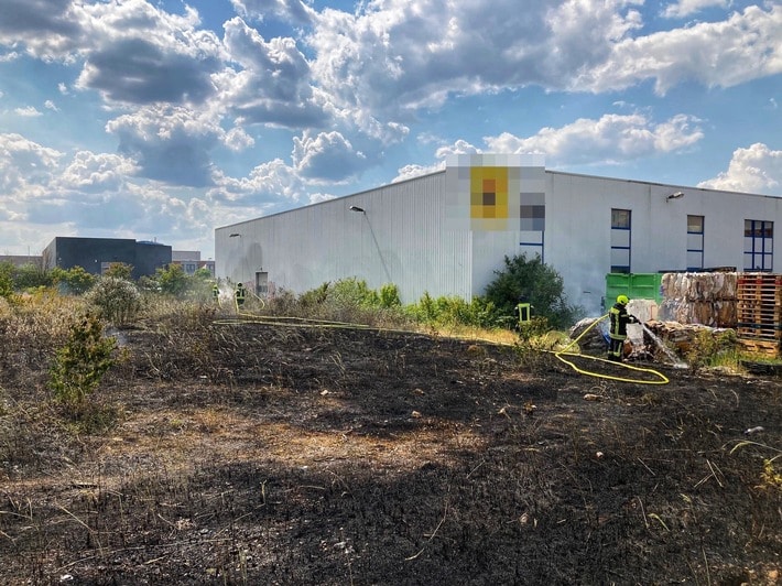 Mehrere Anrufer meldeten am heutigen Tag (15.06.2023) um 15:21 Uhr über den Notruf 112 einen Flächenbrand im Bereich des Max-Planck Rings. Einige Anrufer schilderten, dass das Feuer auf eine angrenzende Lagerhalle überzugreifen drohte.